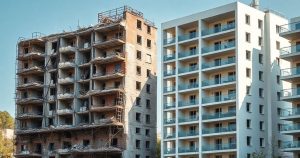 AI generated (Gemini + Flux) featured image for: Türkiyenin Kentsel Dönüşüm Serüveni: Daha Güvenli Şehirler (Prompt: A realistic, almost cinematic architectural image showing a clear juxtaposition of an older, partial)