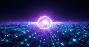 AI generated (Gemini + Flux) featured image for: Teknolojinin Çağdaş Dünyayı Şekillendiren Gücü (Prompt: A futuristic, abstract digital art image showing a dynamic, interconnected global network emerging f)